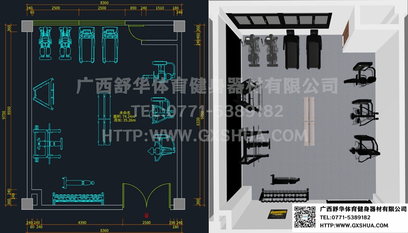 此方案要求面积小于75m²,适用于企事业单位、酒店会所、楼盘社区、工作室、学校等健身场所,能满10-15人同时健身使用。(方案根据场地空间大小、预算、产品需求等进行配置仅为启发性参考)