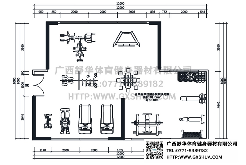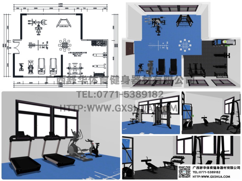 此方案要求面积小于82m²,适用于企事业单位、酒店会所、楼盘社区、工作室、学校等健身场所,能满10-15人同时健身使用。(方案根据场地空间大小、预算、产品需求等进行配置仅为启发性参考)