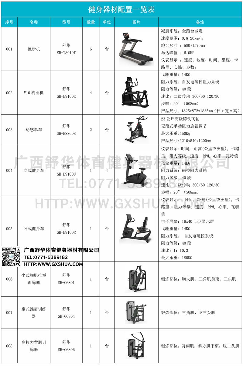 1.南宫NG28V9跑步机SH-T8919T*6台-V9+采用全跑台减震设计,为跑者提供舒适的落脚地感和稳定的跑步支撑,良好的缓冲防护,降低膝关节受伤风险。商用大跑台,为跑者提供从容奔跑空间,180kg承载力,580*1570纯跑台面积,满足专业健身需求。V9+采用F级商用马达,6HP峰值马力,20km/h最高速度,提供源源不断的动力。V9+内置健身直播软件,每周提供直播课程,内含大量专业线上健身点播课程,可为健身房不同人群提供多样化健身课程服务。