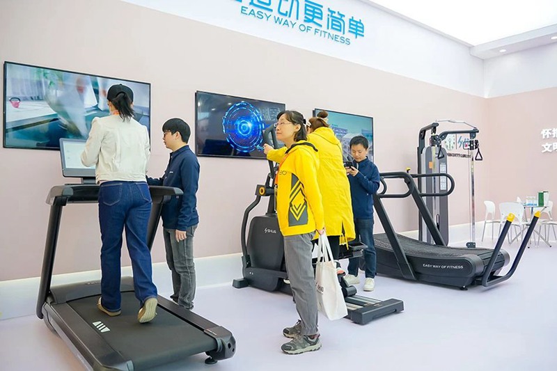 本届教育展,南宫NG28展出9款校园体育产品,包含备受关注的星火+校园户外运动路径、趣味投篮训练器以及跑步机、椭圆机、综合力量训练器等。