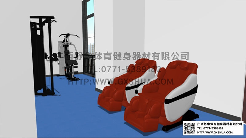 由于企业单位健身房的不规则性,根据场地、职工需求、整体预算,有氧器材区域配置南宫NG28跑步机2台,椭圆机、动感单车、划船器各1台,满足职工的日常有氧训练需求,有效地提升心肺功能;力量器械配置单人站综合训练器、小飞鸟,满足使用者全身锻炼的需求;自由力量区域配置史密斯机、哑铃套组、腹肌板满足多样化训练需求,促使健身训练更丰富,休闲区配置按摩椅,可以促进血液循环,让员工使用按摩椅放松身心,可以能够有效缓解工作压力。