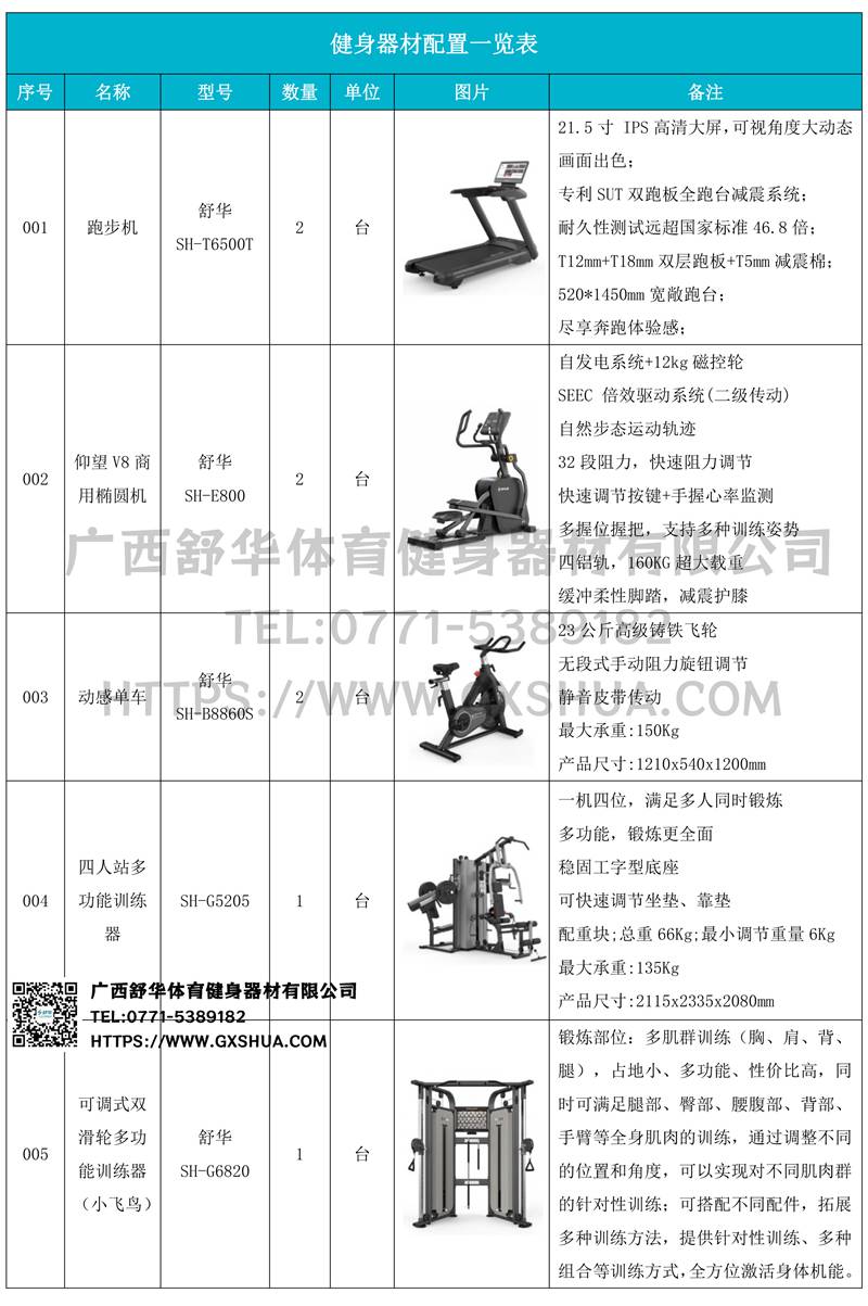 1.南宫NG28X5 Pro跑步机SH-T6500T*2台-采用高性能电机,提供稳定动力,支持长时间高强度运行,适合长时间有氧训练,跑台宽敞,提供舒适跑步空间,减少运动中的束缚感,适合不同体型用户。配备先进减震系统,有效缓解跑步对关节的冲击,降低运动损伤风险,内置智能控制系统,支持多种预设程序和个性化训练计划,用户可根据需求调整速度和坡度,满足多样化训练。