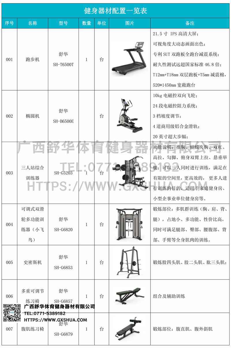 1.南宫NG28X5 pro跑步机SH-T6500T*3台-采用高性能电机,提供稳定动力,支持长时间高强度运行,适合长时间有氧训练,跑台宽敞,提供舒适跑步空间,减少运动中的束缚感,适合不同体型用户。配备先进减震系统,有效缓解跑步对关节的冲击,降低运动损伤风险,内置智能控制系统,支持多种预设程序和个性化训练计划,用户可根据需求调整速度和坡度,满足多样化训练。