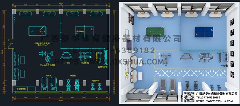 员工释放压力的「充电站」:193m²职工健身房 布局设计方案